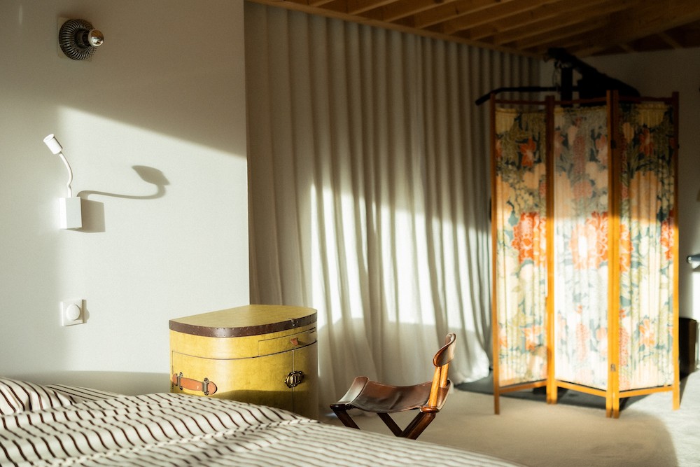 À l’étage, la charpente apparente apporte du relief et du caractère. La suite parentale de 30 m², les chambres enfants, et la salle de bain graphique complètent ce décor avec style. L’ensemble forme un lieu inspirant, où chaque pièce raconte une histoire, propice aux campagnes photo, aux tournages lifestyle, à la publicité mode, mobilier ou décoration.